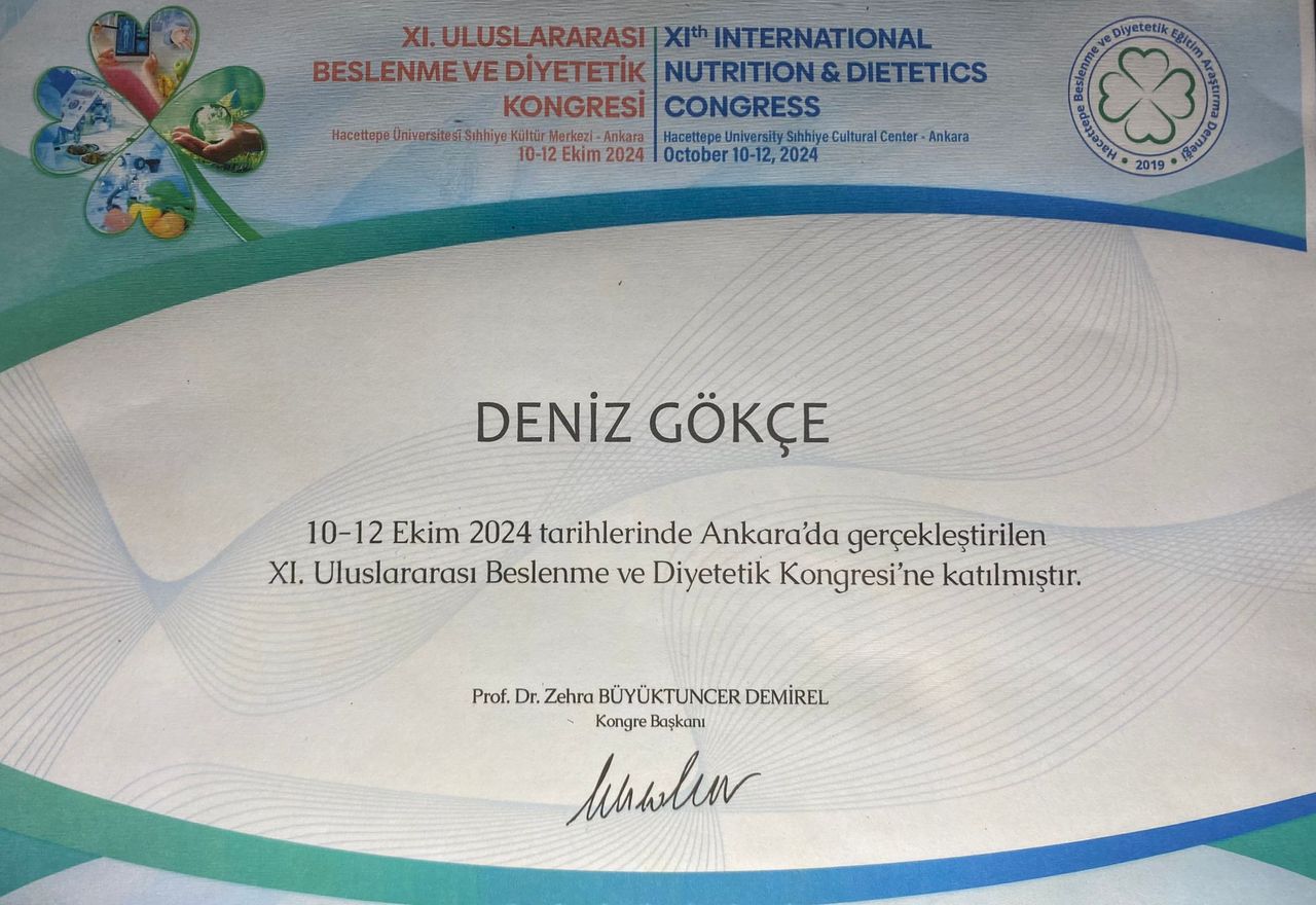 Uzm Dyt Deniz Gökçe,Beslenme ve diyetetik alanındaki yolculuğuma Doğu Akdeniz Üniversitesi’nde başladım ve lisans eğitimimi burada başarıyla tamamladım. Akademik merakımı ve mesleki uzmanlığımı bir adım öteye taşımak amacıyla Başkent Üniversitesi’nde Beslenme ve Diyetetik üzerine Tezli Yüksek Lisans derecemi aldım. Şu anda yine Başkent Üniversitesi bünyesinde aynı alanda Doktora çalışmalarıma devam ederek, beslenme biliminin en güncel ve derinlikli noktalarında kendimi geliştirmeyi sürdürüyorum. Beslenmenin hem bireysel hem de toplumsal sağlığın temeli olduğu inancıyla hem yüz yüze hem de dijital platformlar üzerinden online beslenme danışmanlığı hizmeti veriyorum. Doktora sürecimin bana kattığı güncel literatür bilgisiyle; danışanlarımın sürdürülebilir alışkanlıklar kazanmalarına, kilo yönetimlerine ve metabolik sağlıklarını korumalarına destek oluyorum. Bilimin ışığında, her bireyin kendine has ihtiyaçlarını gözeten, motivasyon ve disiplini odağına alan profesyonel yaklaşımımla mesleğimi tutkuyla icra etmeye devam ediyorum.